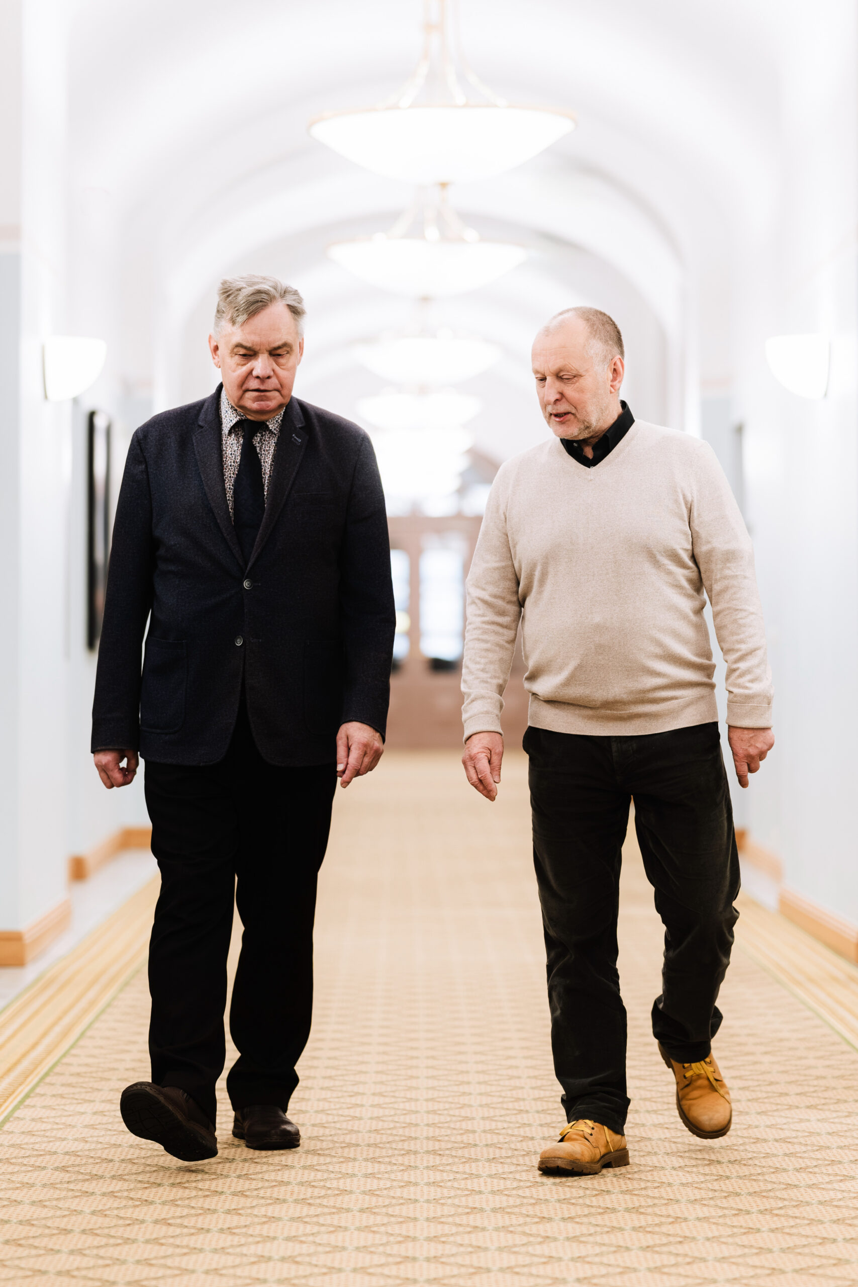 Kunagised kursusekaaslased Raul Narits ja Eerik Kergandberg vestlushoos Riigikohtus. FOTO: Rene Riisalu