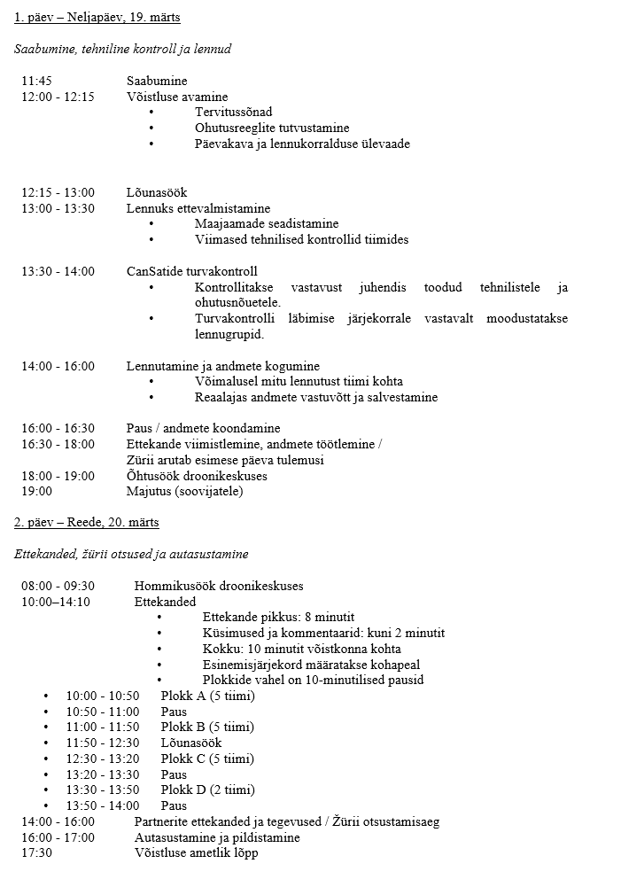 CanSat ESTONIA 2026 eelvooru päevakava: