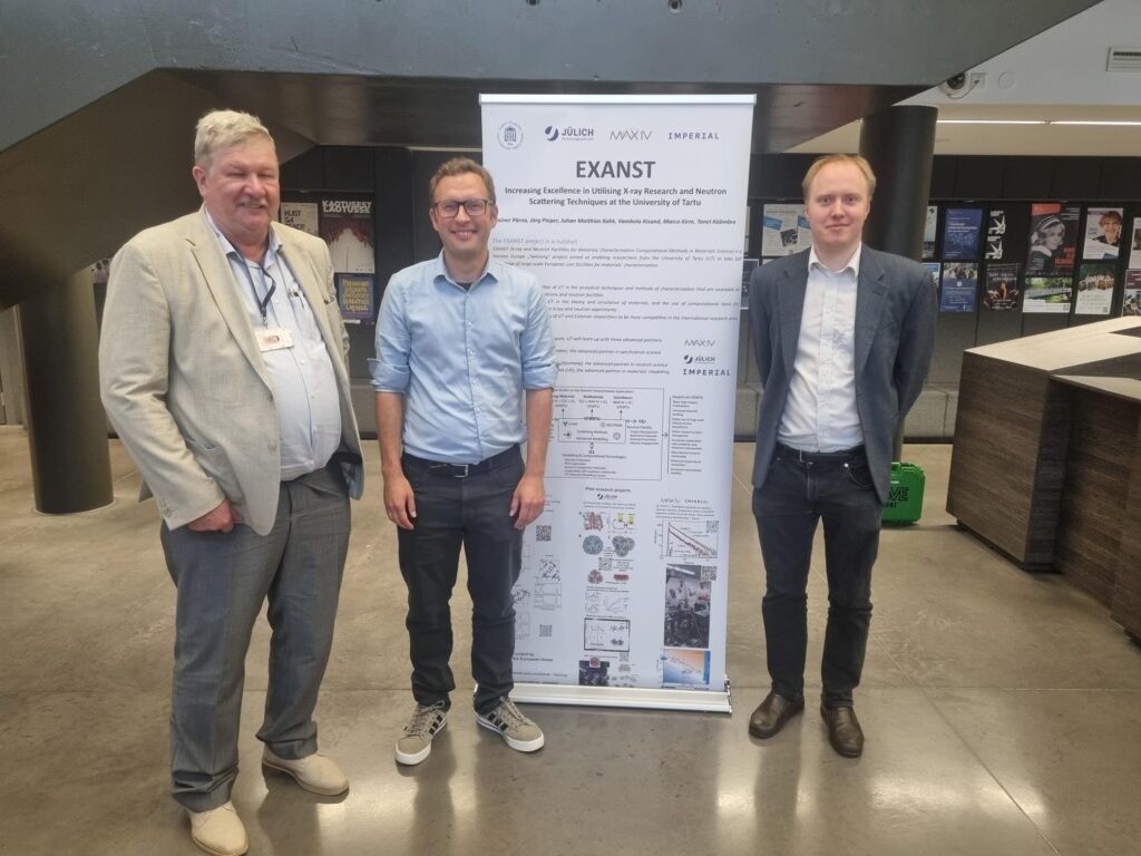 Institute of Physics, Institute of Chemistry and Institute of Technology at the University of Tartu (UTARTU) organised “Researchers’ Night Festival 2025” on September 26, 2025 at the Maarjamõisa campus, as happened in many other cities in Europe. The aim of the “All-European Researchers’ Night” is to make scientific research more accessible to the public by opening labs and popularising science through attractive experiments. The event program contained science theatre shows, operation and demonstration of research devices, real-time weather monitoring and excursions to the laboratories at the Institute of Physics. Many citizens with children, as well as students and researchers from other institutes, attended. The UTARTU EXANST team was sharing their achievements during the first year of the project with several roll-ups (on the EXANST project, synchrotron radiation, etc.) in the “Physicum” building. Also, some parts of vacuum equipment used in the experiments were demonstrated. During the opened doors time (17.00-20.30), more than 200 participants of various ages visited. The EXANST activities were presented by several project members: N. Krutyak, J.M. Kahk, A. Tõnisoo and M. Kirm. A lot of questions were asked about neutron and X-ray science, our achievements and cooperation with the advanced partners from MAX IV Lab, FZ Jülich and Imperial College.