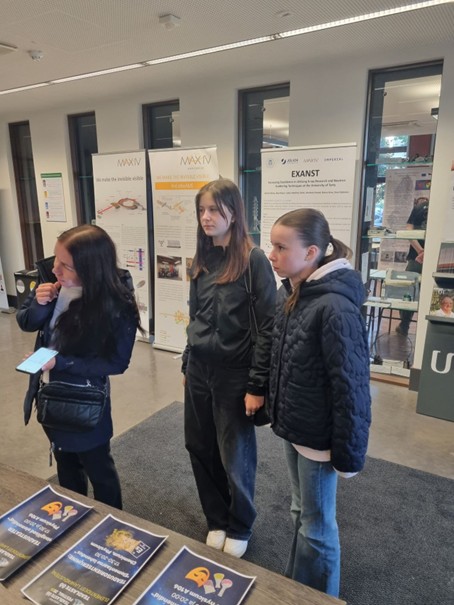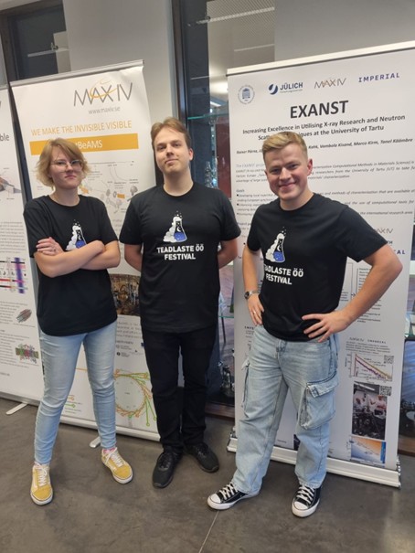 The University of Tartu organized “The Night of scientists” 27 September 2024 in the frame of “European Researchers Night 2024 “. The activities of this event were also located at the Institute of Physics and Institute of Chemistry. The aim of the event was to attract more interest of general public to material science and education. The program of the event included, particularly, demonstration experiments, quests and excursions to the laboratories. The event attracted attention both general public and university students and researchers. The EXANST was presented with roll-ups (EXANST project, MAX IV Lab ) in “Physicum” (the building of Institute of Physics, UTARTU) with more than 300 participants. Also several project members (R.Pärna, J.M. Kahk, V. Kisand, M. Kirm, T. Käämbre) were present explaining the nature of EXANST.