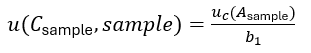 This is the approach quoted by Miguel. I call it here Eurachem approach because it is the approach presented in Appendix E.4 of the Eurachem uncertainty guide. I am presenting the corresponding equations here in slightly different form, which may be more convenient for you to use. The uncertainty of the analyte concentration in the sample, Csample, can be expressed as follows: