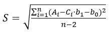 expresses the uncertainty originating from the scatter of data points around the calibration line. S is the so-called linear regression standard deviation: